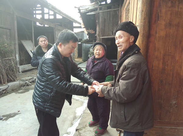 万山区计生协专职副会长刘毅慰问黄道乡失独老人张仁学夫妇