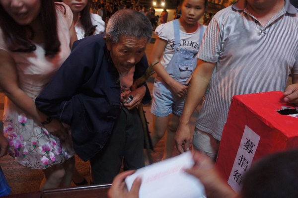 8月15日晚,松桃县迓驾镇青山村计生协在村文化健身广场开展村级生育关怀基金募捐活动,500余名群众踊跃参与,共筹集到村级生育关怀基金3.2万元。