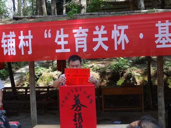 7月11日,万山区茶店街道办事处尤鱼铺村举行首个村级生育关怀基金捐赠仪式。