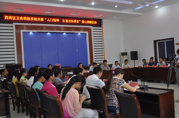 西秀区把每年的8月定为 “人口福利·生育关怀基金”爱心捐赠月,倡导全区干部、职工积极参与“一日捐”活动,为计生困难家庭献爱心。西秀区卫食药监系统响应号召,8月27日,西秀区卫食药监系统开展“人口福利·生育关怀基金”爱心捐赠。来自全区各乡(镇)卫生院、区级医院和部分村医代表共23家单位及个人带头捐资3.25万元。