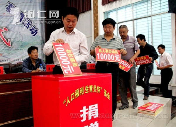 2012年9月15日,由省计生协会、省人口福利基金会和德江县委县人民政府共同主办的“人口福利·生育关怀基金”捐赠仪式隆重举行。改革开放以来,德江全县53万各族人民群众,深入贯彻落实科学发展观,“抢开发机遇、抓开放带动、谋经济发展、促社会和谐”,经济社会取得可喜成绩,人民生活水平显著提高。自实行计划生育以来,全县少出生32万余人,为推动经济社会又好又快、更好更快发展创造了良好的人口环境。今年8月以来,德江县按照“扶助计生家庭、共享人口福利”的宗旨,鼓励机关单位、企业、社会团体和个人捐助款物开展人口福利事业,多渠道筹措生育关怀基金,切实帮助计生贫困家庭解决实际困难。