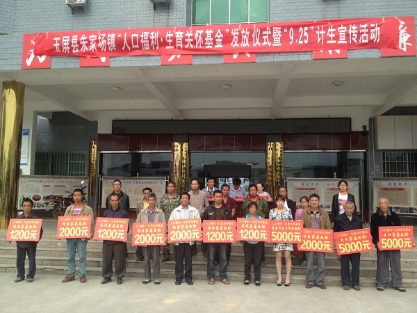 9月25日,朱家场镇举行“人口福利•生育关怀基金”发放仪式暨“9.25”计生宣传活动,27户计生困难家庭获得5.9万元救助金