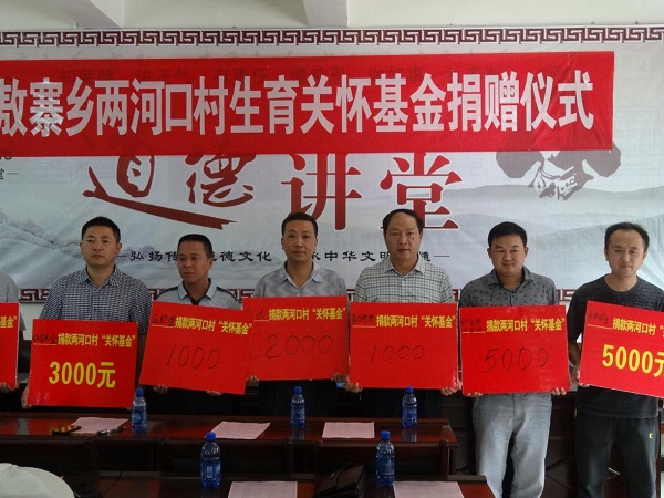 8月24日,万山区下溪乡兴隆村举行村级生育关怀基金捐赠仪式,相关单位、爱心企业和爱心人士慷慨解囊,共筹集资金54600元,现场为4户计生困难家庭发放2000元扶助金。