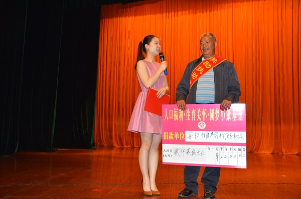 独子户奖励扶助对象顾树先捐赠2200元,其中1200元是计生“四项制度”兑现的奖扶金